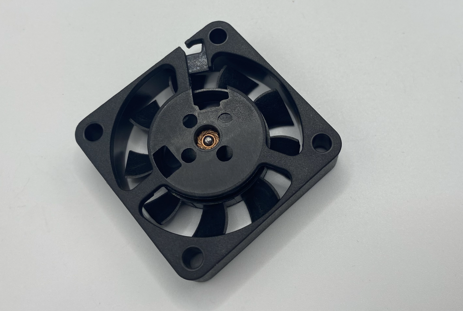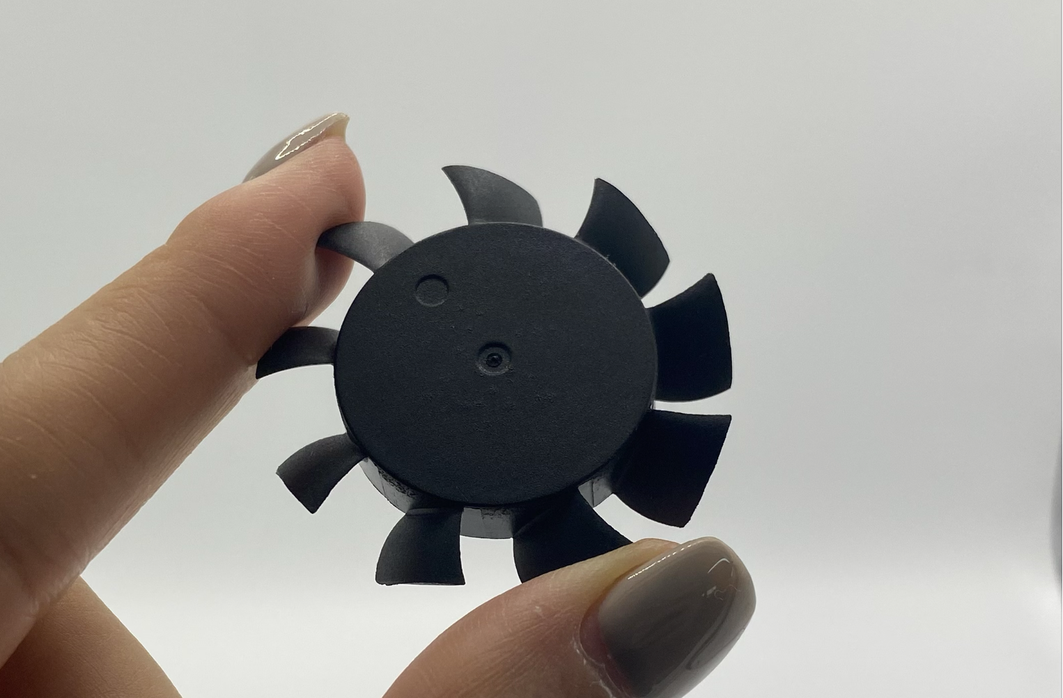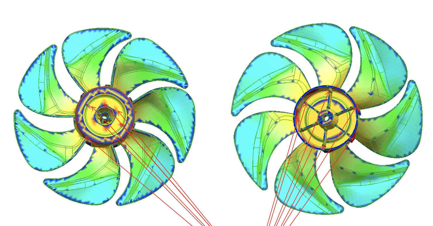 During the design phase, the team initially proposed placing the injection gate at the center of the impeller hub to achieve the most balanced filling pattern.