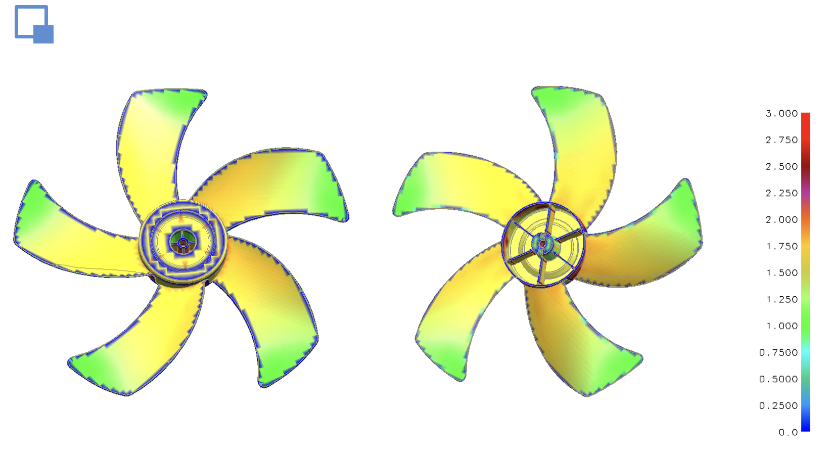 Uniform cooling was critical to avoid warpage in the twisted blades. Two cooling design concepts were studied: